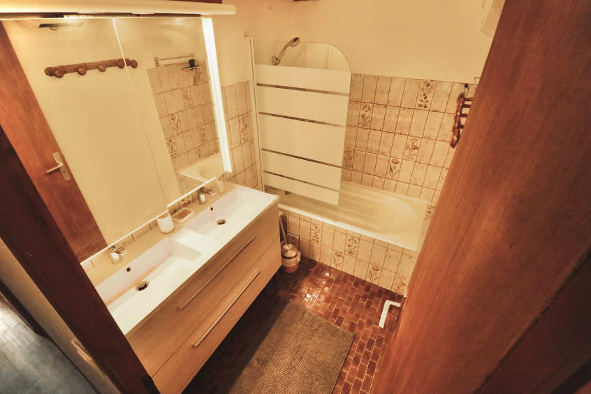 4-room apartment of approx. 110m² for up to 8 or 9 people; located on the first floor (no elevator) of a small 2-unit residence with access via a small slope to the outside. It has an east-facing ground-floor terrace (not cleared of snow in winter).