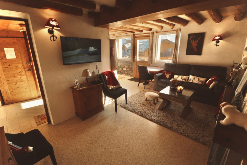 4 Pièces de 110m² environ pour 8 à 9 personnes maximum ; situé au rez-de-chaussée sans ascenseur d'une petite résidence de 2 logements avec un accès par une petite pente à l'extérieur. Il dispose d'une terrasse de plein-pied exposée Est (Non déneigée l'hiver).